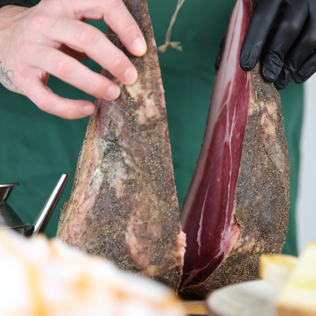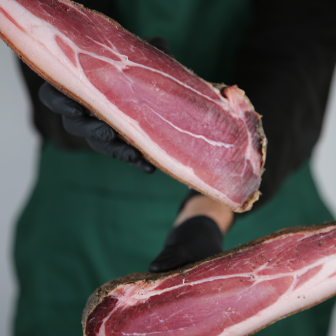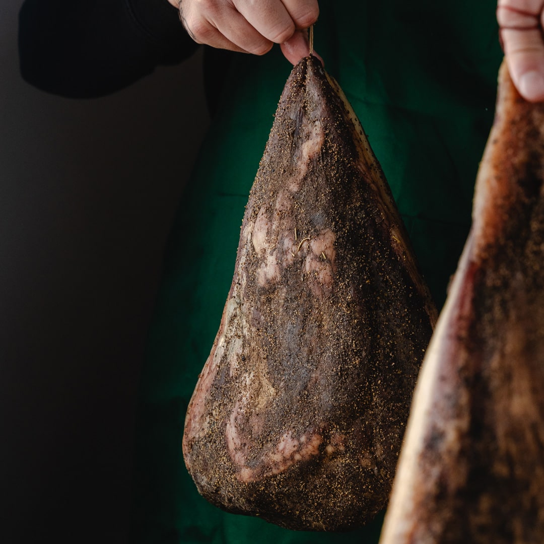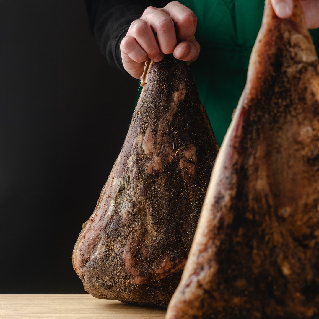 Salumi buoni e naturali, legati a mano e con stagionatura prolungata. Per garantire, senza forzature, a ogni prodotto il tempo adeguato.